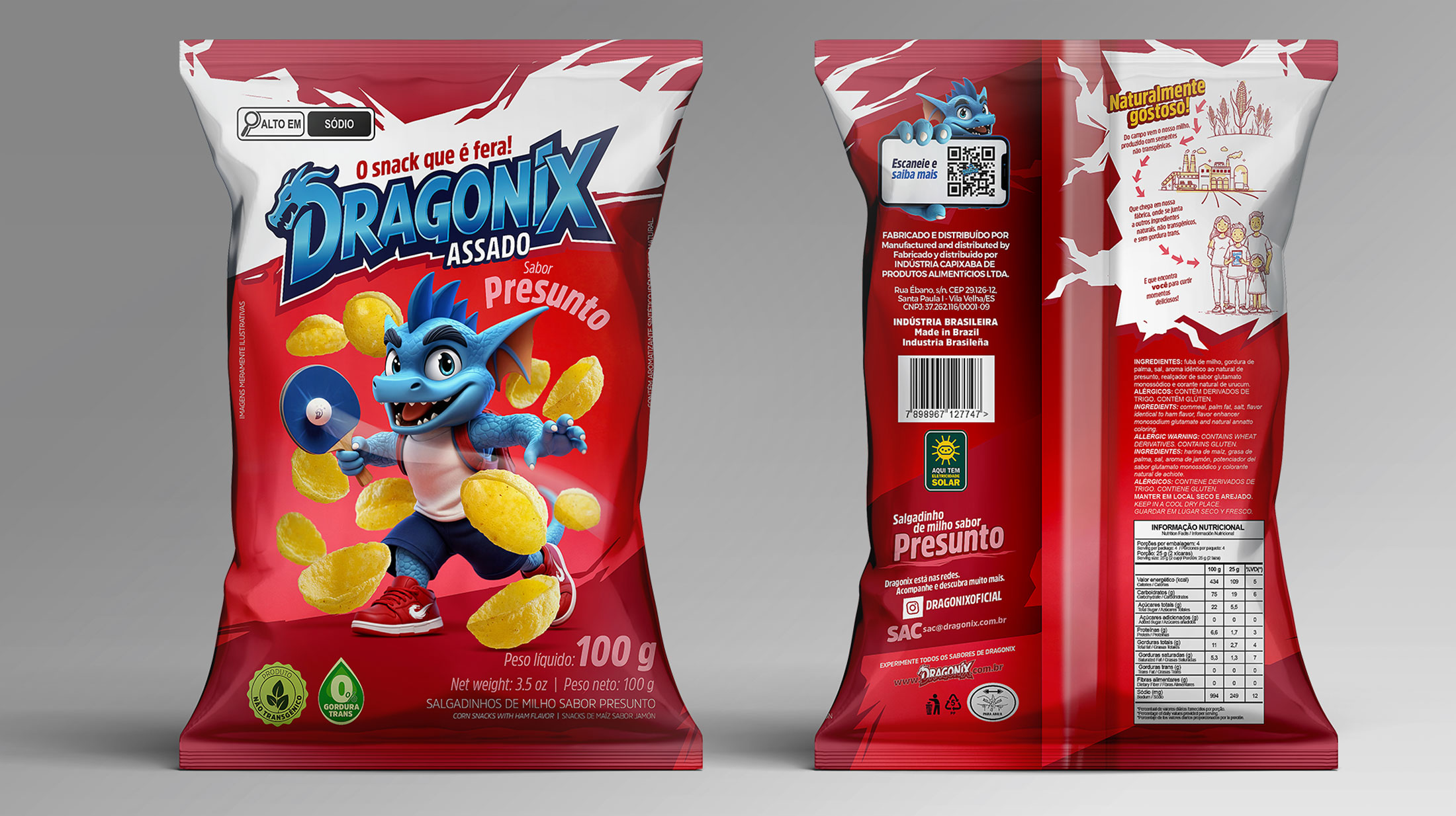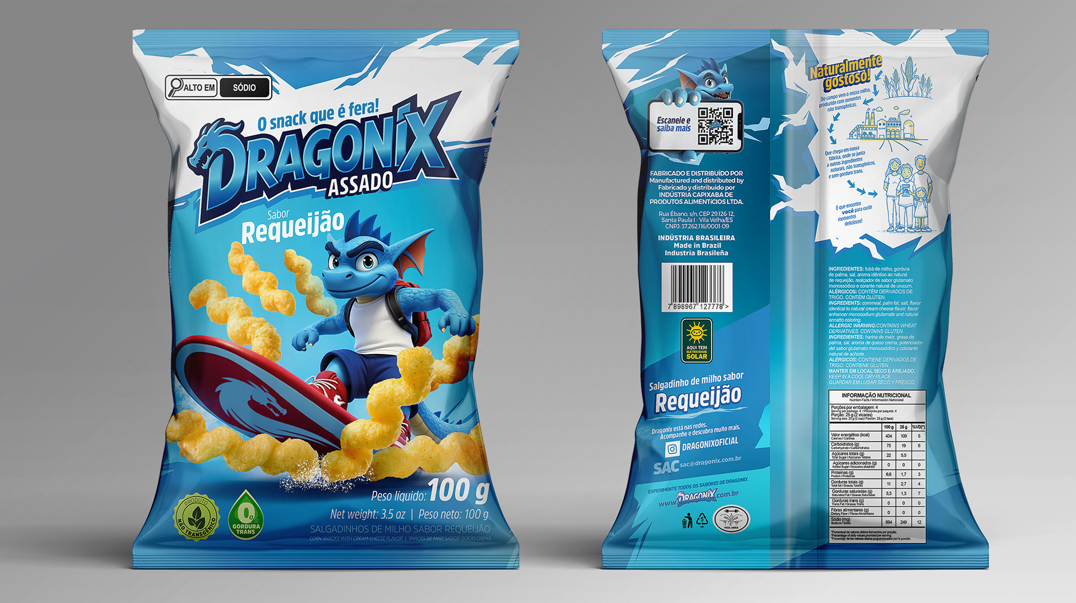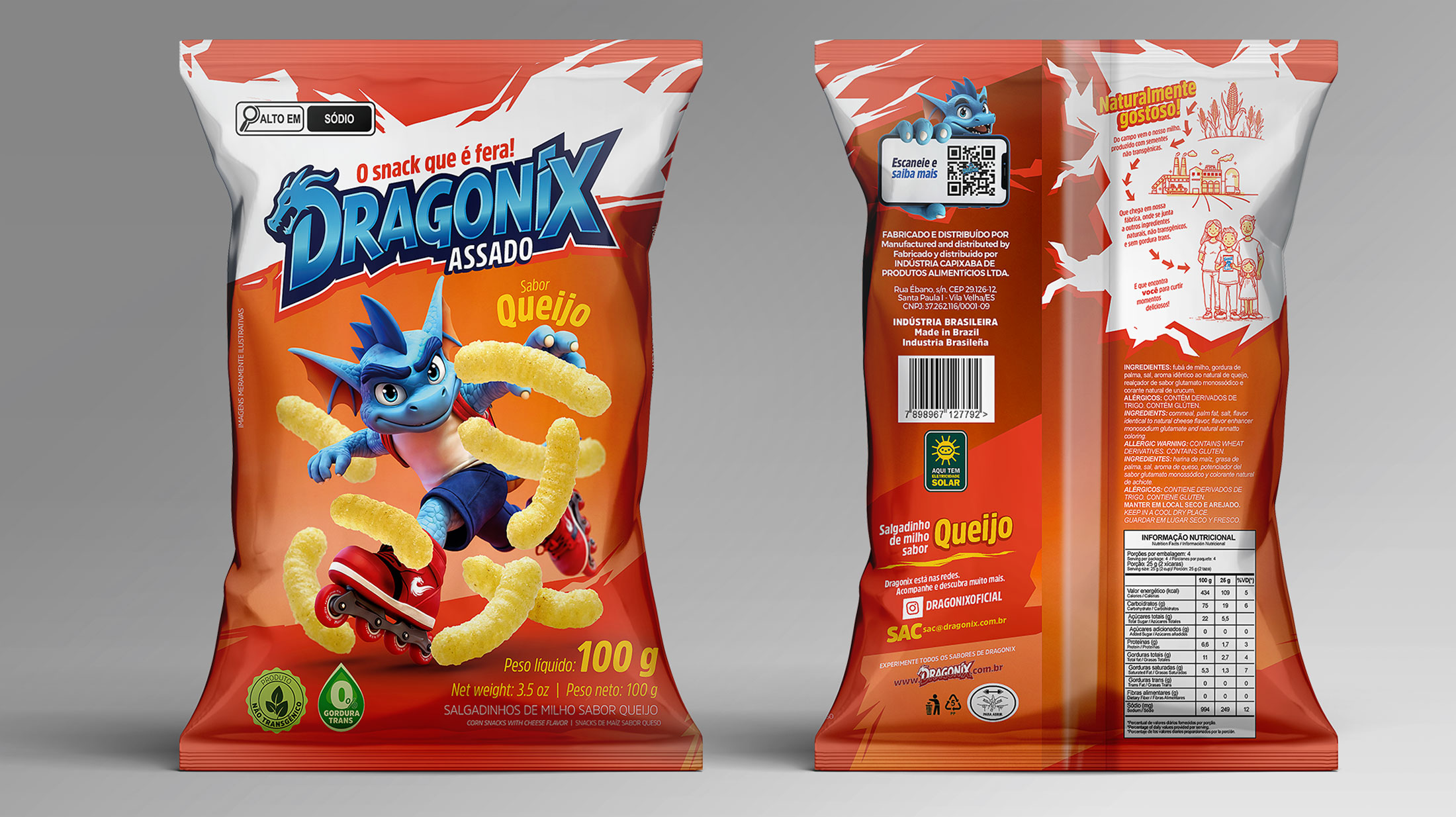 Na Fire, desenvolvemos a nova linha de embalagens Dragonix do zero. Do personagem à identidade visual, criamos um universo próprio capaz de se conectar de forma envolvente e memorável. Cada detalhe, de cores, traços e ilustrações, transforma as embalagens em peças de storytelling visual, dando vida e atitude aos produtos Dragonix.