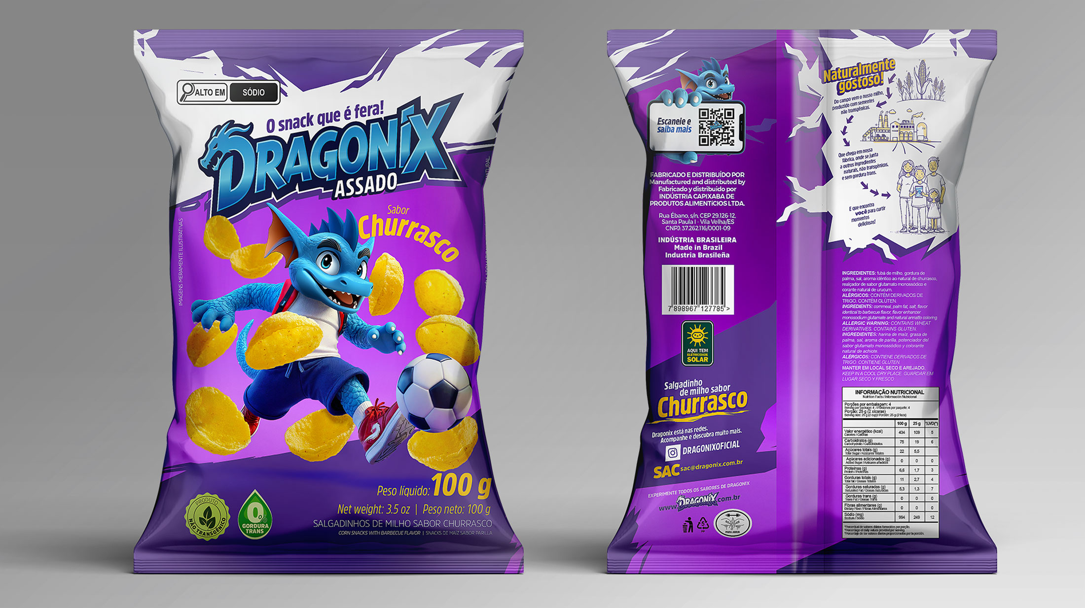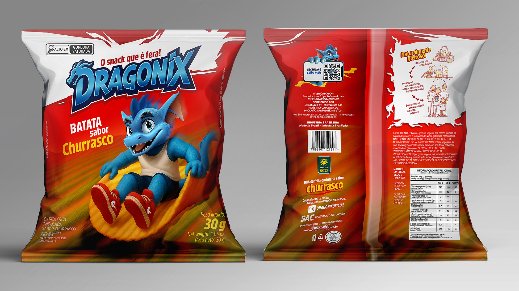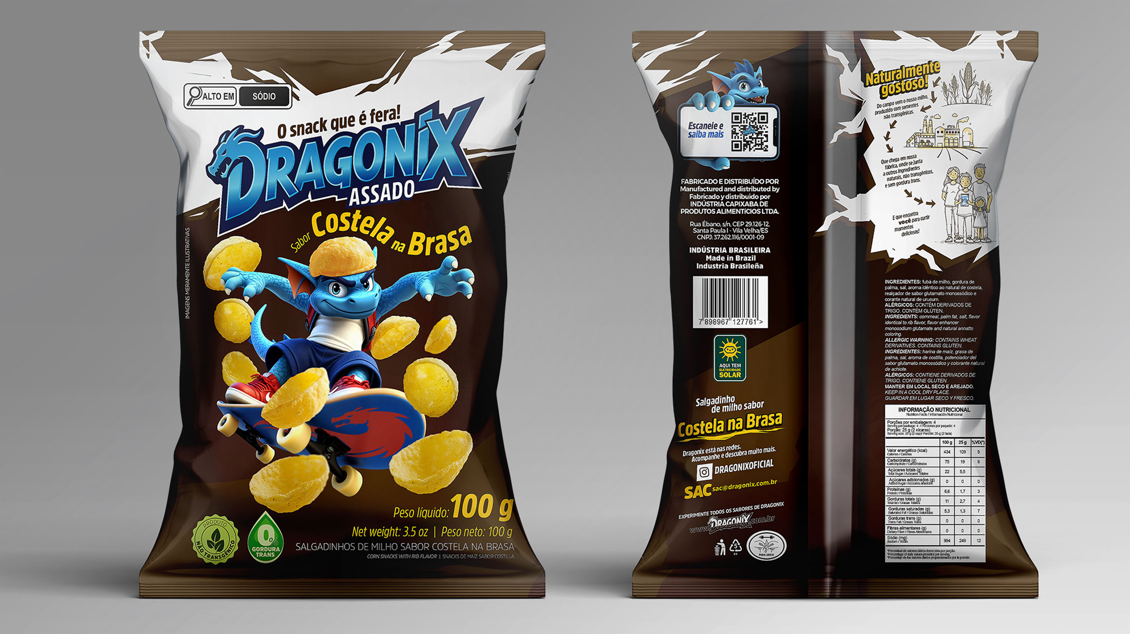 Na Fire, desenvolvemos a nova linha de embalagens Dragonix do zero. Do personagem à identidade visual, criamos um universo próprio capaz de se conectar de forma envolvente e memorável. Cada detalhe, de cores, traços e ilustrações, transforma as embalagens em peças de storytelling visual, dando vida e atitude aos produtos Dragonix.