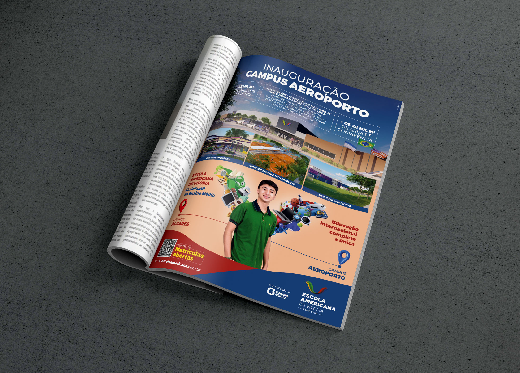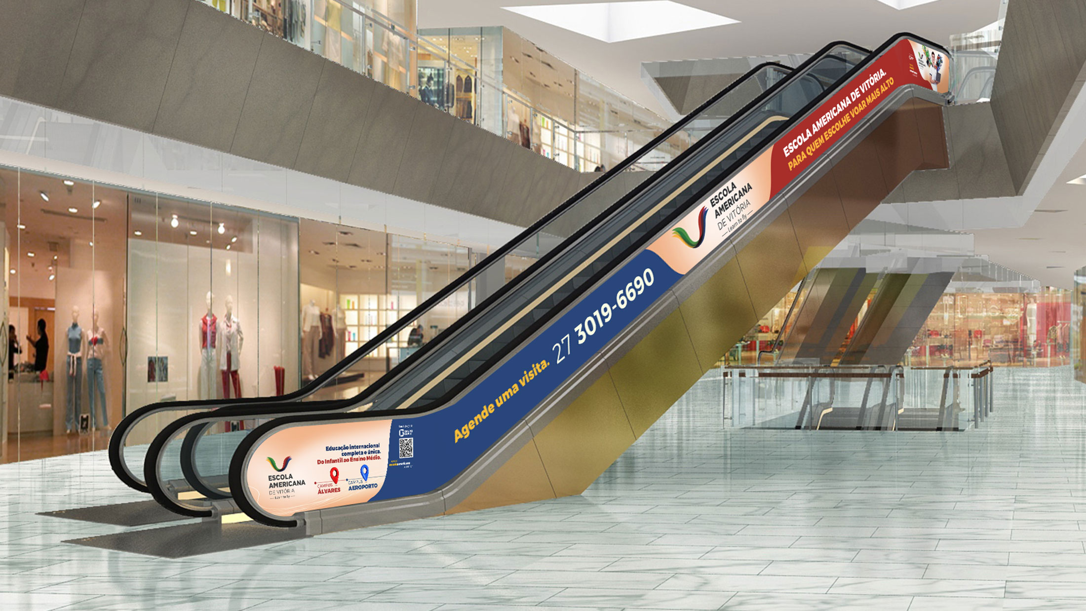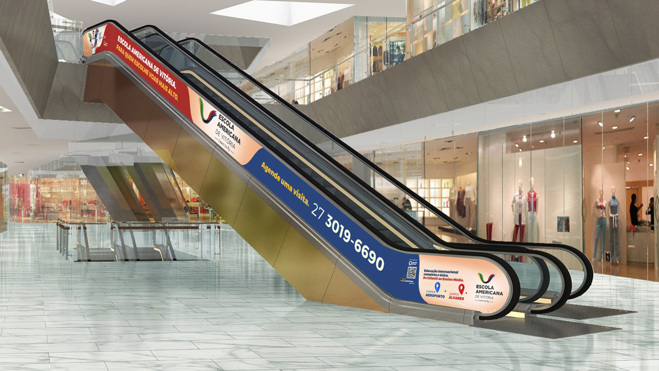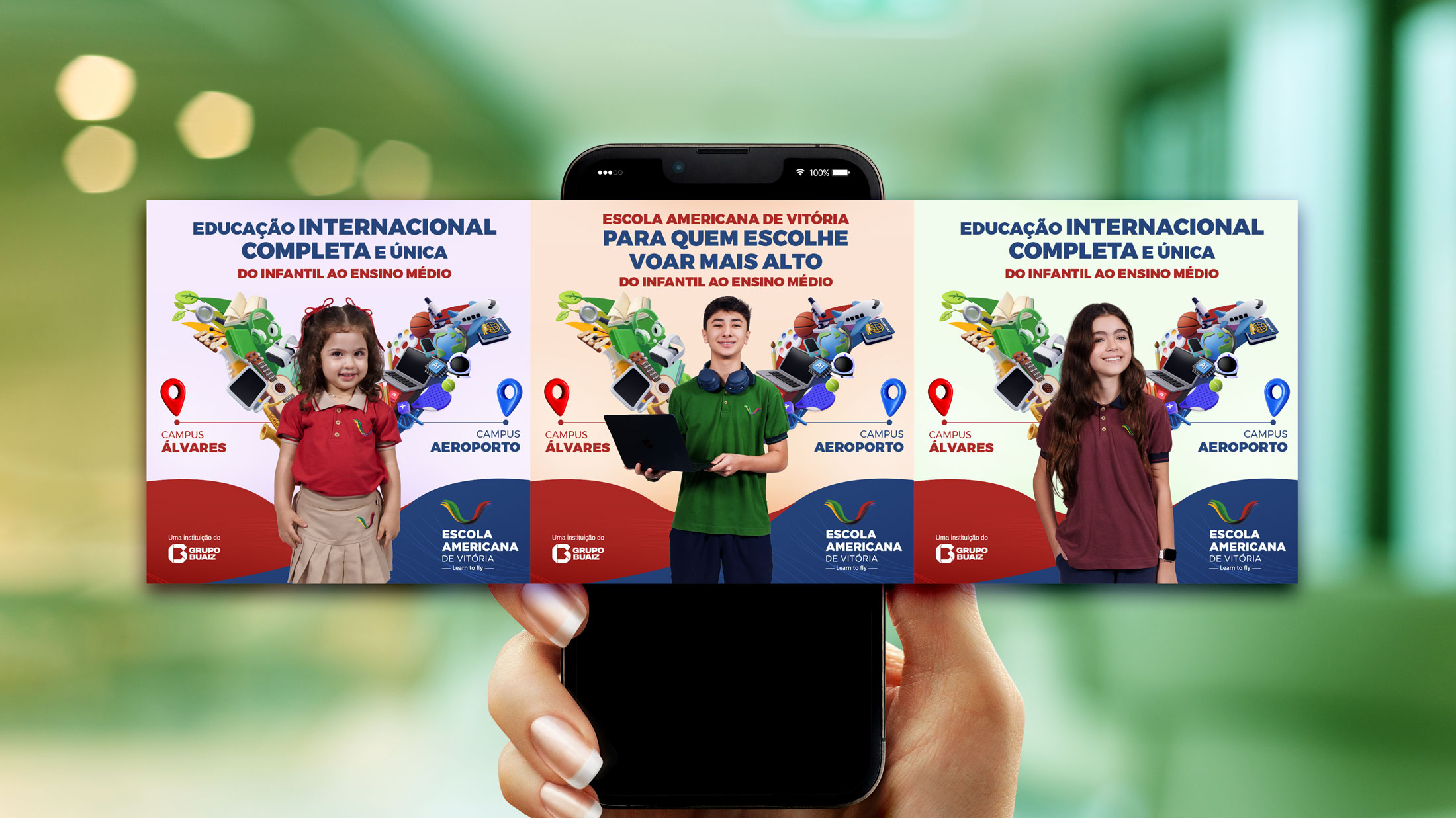 Após o sucesso da campanha de matrícula 2025, a Fire deu continuidade à comunicação da Escola Americana de Vitória com a campanha de 2026, agora destacando também o novo campus Aeroporto. Mantivemos as asas como símbolo de liberdade e sucesso e atualizamos as cores por turma, trazendo organização visual e destaque para cada segmento. Cada peça combina criatividade, coerência de marca e adaptabilidade, garantindo consistência, clareza e forte apelo visual, tornando a experiência de matrícula única, envolvente e conectada a este novo capítulo da escola.
